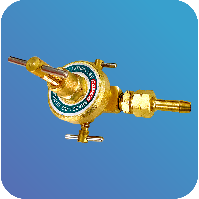 The Gasco LPG Regulator Without Meter is a robust industrial regulator engineered for steady, safe, and uninterrupted LPG flow. Built with a die-forged solid brass body, it withstands 1.5× full cylinder pressure, ensuring extended service life and superior durability. Its nylon-reinforced neoprene diaphragm offers accurate pressure control and leak-free performance. Designed and tested as per IS:6901 standards, this Gasco regulator delivers reliability in high-demand workplaces across India, including Pune and Maharashtra. Available in 22mm and 25mm sizes, it is ideal for factories, workshops, fabrication units, metal processing setups, and industrial heating applications. KEY FEATURES 1. Forged brass heavy-duty construction 2. Withstands 1.5× cylinder pressure 3. Gauge-less (no meter) long-life design 4. Nylon-reinforced neoprene diaphragm 5. IS:6901 tested & compliant 6. Available in 22mm and 25mm 7. Zero leakage & stable gas flow APPLICATIONS 1. Suitable for a wide range of industrial operations, including: 2. Welding 3. Heating operations 4. Gas cutting 5. Brazing applications 6. Metal fabrication workshops 7. Research & testing laboratories 8. Industrial furnaces & burners 9. Repair workshops 10. General industrial LPG supply systems