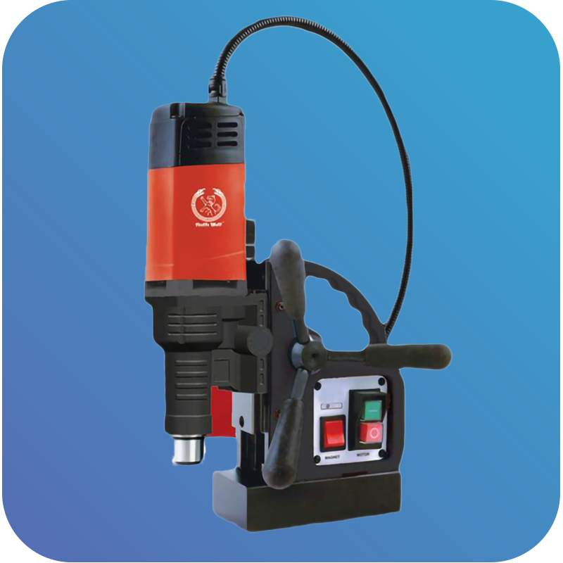 The Ralliwolf Yuva 40 is a compact yet powerful 40 mm magnetic core drill designed for precise metal drilling in fabrication workshops, construction sites, and industrial units across Nashik. Its 1150W motor, strong 10,000N magnetic adhesion, and lightweight build make it perfect for portable, on-site drilling with high stability and accuracy. Key Features 1. Powerful 1150W motor for smooth core drilling 2. Strong 10,000N magnetic adhesion for secure drilling on steel surfaces 3. Lightweight & portable design ideal for on-site industrial jobs 4. Supports broach cutters from 12–40 mm 5. Twist drilling up to 13 mm 6. Includes essential accessories: Allen keys, drill chuck, adaptor, safety belt 7. Stable 750 r.p.m. no-load speed for precise operations Specifications 1. Model: YUVA40 2. Motor Power: 1150W 3. Spindle: 19 mm 4. Magnet Power: 10,000N 5. Input Voltage: 220–240V 6. Frequency: 50–60Hz 7. Broach Cutter Capacity: 12–40 mm 8. Twist Drilling: Up to 13 mm 9. No Load Speed: 750 r.p.m. 10. Net Weight: 10 kg Applications 1. Metal fabrication workshops 2. Industrial steel drilling 3. Construction & assembly jobs 4. Portable drilling on steel beams, plates, and structures 5. Maintenance & repair operations