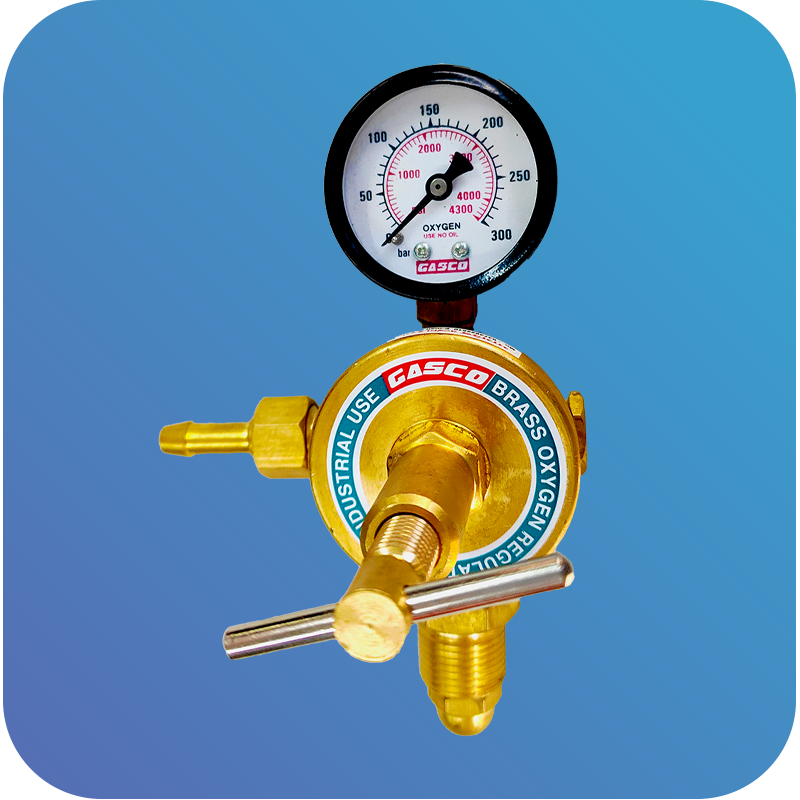 The Gasco Single Stage Single Gauge Oxygen Regulator is engineered for accuracy, durability, and stable gas flow. Built with a die-forged brass body and precision components, it ensures safe operation across heavy-duty industrial applications. Designed with advanced pressure control technology, it delivers consistent performance, no leakage, and enhanced safety—making it ideal for welding, cutting, brazing, and heating operations. Gasco offers customization options in size and configuration to meet diverse industrial requirements. Its sturdy design, leak-proof body, and safety relief valve ensure uninterrupted and secure usage even under demanding conditions. Technical Specifications Oxygen Regulator Gas Model No. Max. Inlet Pressure Max. Outlet Pressure Inlet Connection Outlet Connection Flow Rate (LPM) Oxygen GOX-2 150 bar 10 bar G-5/8“; A-14 BSP RH G-3/8”-19 BSP RH 800 Acetylene Regulator (Optional Pairing) Gas Model No. Max. Inlet Pressure Max. Outlet Pressure Inlet Connection Outlet Connection Flow Rate (LPM) Acetylene GDA-2 25 bar 1 bar G-5/8“; A-14 BSP LH G-3/8”-19 BSP LH 100 Key Features 1. Stable and constant gas flow 2. Accurate pressure setting 3. Zero gas leakage construction 4. Die-forged brass body for extended durability 5. Single stage, single gauge heavy-duty design 6. Safe and secure usage 7. Equipped with safety relief valve 8. Compatible with all industrial gas systems 9. Ideal for Oxygen & Acetylene gas applications Applications 1. Welding 2. Gas cutting 3. Heating applications 4. Brazing operations 5. Fabrication workshops 6. Industrial maintenance 7. Automotive & manufacturing units